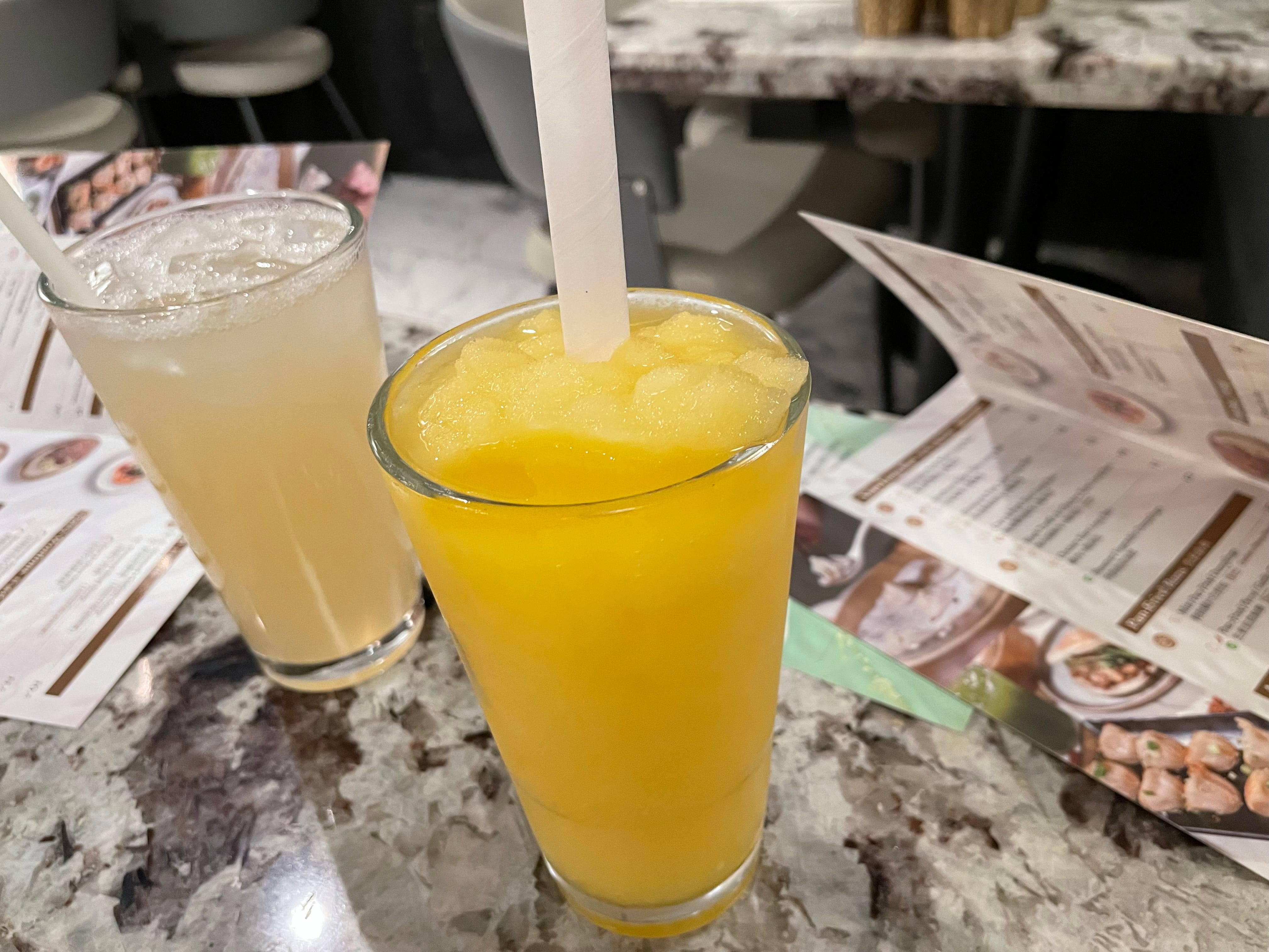 Sunshine lemonade with lychee and frozen sunshine lemonade with yuzu and mango