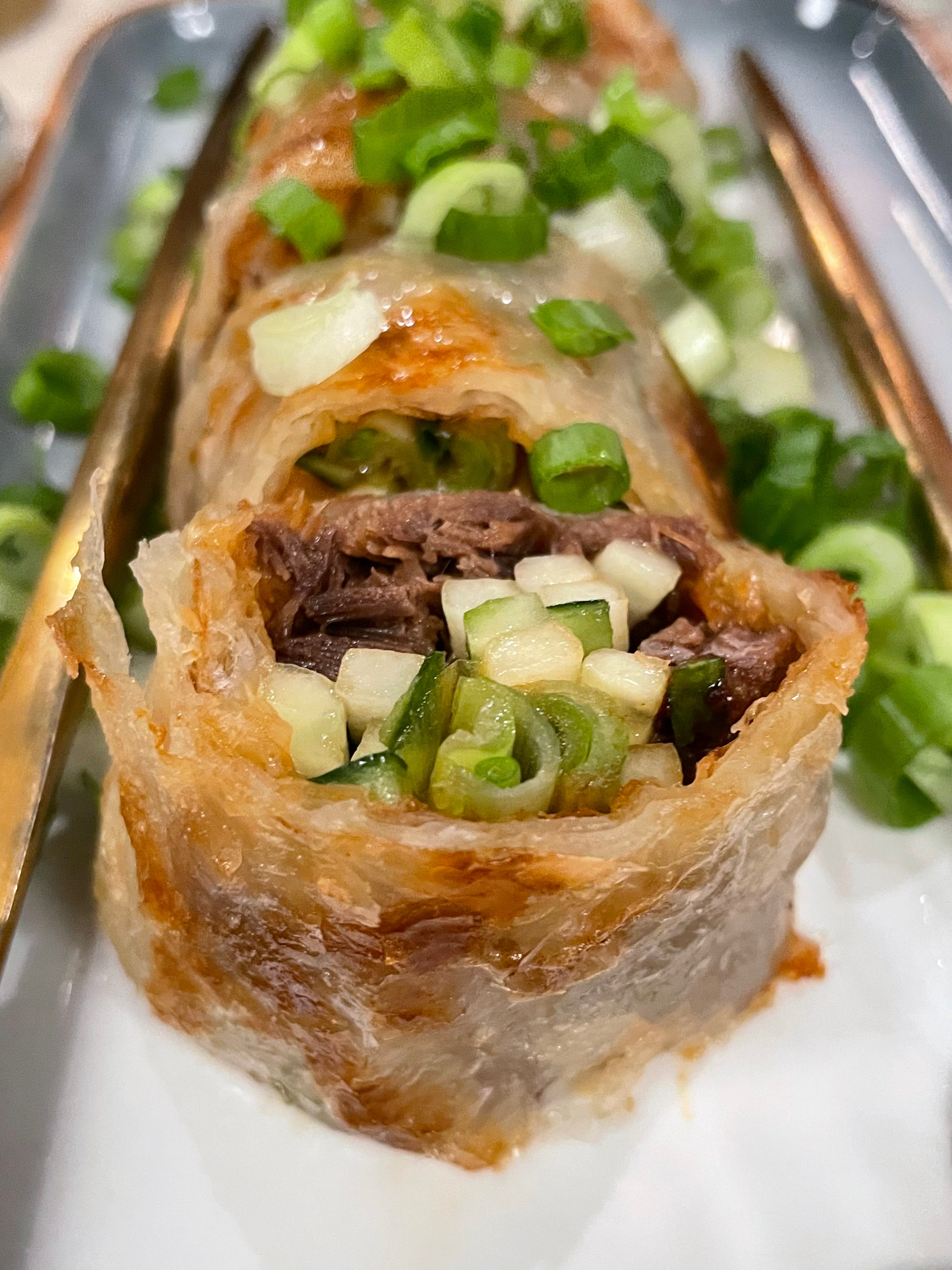 The beef roll was decent, but it got a little soggy from oil, so we could have skipped it. The beverage menu is fun — we ordered a lychee lemonade and a frozen lemonade with yuzu and mango, and it was hard not to order a second frozen one, which goes head to head with DTF’s grape slush for being very refreshing.